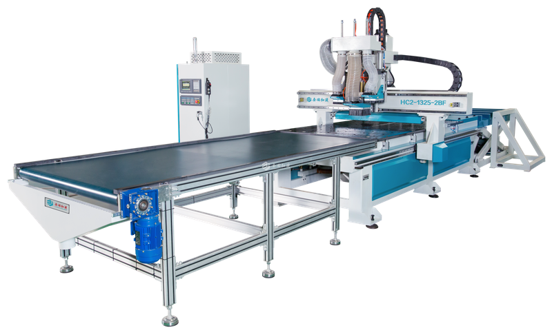 l自动上料、优化开料、打垂直孔、自动下料工序无间断,加工完成自动将板材从加工台面推下,方便操作人员取料,并省去怠工时间,实现效率产出优化。